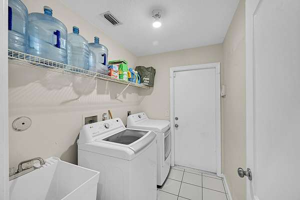- Dishwasher, Dryer, Electric Range, Garbage Disposer, Microwave, Range, Refrigerator, Softener Water, Washer, Washer/Dryer Combo