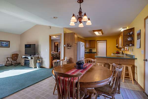 The custom, stickbuilt 2 bedroom, 2 bathroom, immaculately maintained ranch style home features 1,160 square feet of main level living, large windows perfectly framing the surrounding views, a cozy gas fireplace, spacious and bright kitchen and dining area, large primary suite with full bath, functional floor plan ideal for kids or visiting guests, separate laundry and utility room and an attached two car garage.