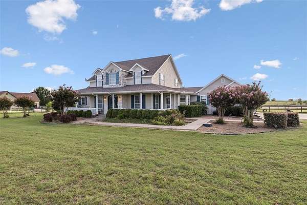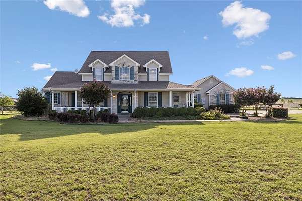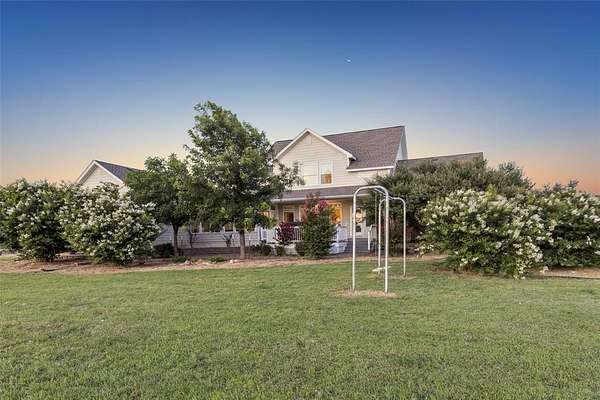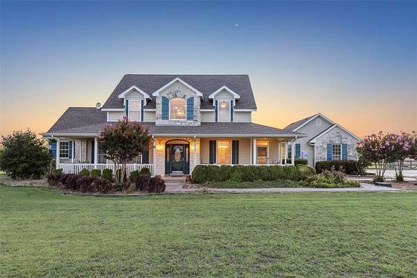 Start your day on the 48-foot wraparound porch and end it with stunning west-facing sunsets from the back patio. Enjoy a walking trail that winds around the neighborhood for quiet country nights or daytime riding. Just 30 minutes away, explore Lake Ray Roberts and the LBJ Grasslands for endless trails and outdoor adventure.