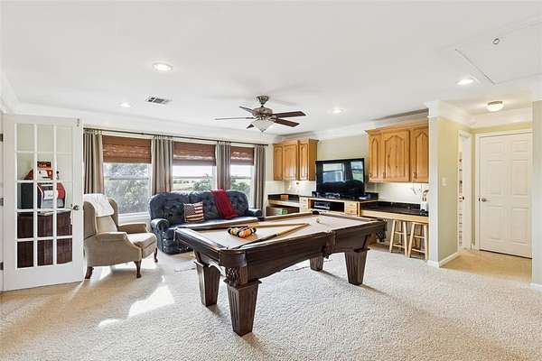 The primary suite is downstairs, while a spacious upstairs game room is perfect for movie nights, playtime, or guests. A unique first-floor storm shelter adds peace of mind to the home's thoughtful design and seems to be a lot of peoples favorite feature!