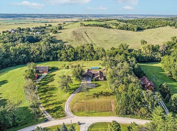 PRICE DROP! MOTIVATED SELLER! 30 Min from Omaha! Experience the perfect blend of luxury, privacy, and country living in this stunning 5,880 sq ft custom home set on 4.5 scenic acres with breathtaking views. This rare property offers 5 spacious bedrooms, 2 large non-conforming rooms, and 4 full bathrooms, making it ideal for large or multi-generational families. Step inside to discover bright, open living spaces, multiple laundry rooms. The primary suite is a true retreat featuring a walk-in shower, expansive closet, and a private courtyard-perfect for quiet mornings or unwinding under the stars. The walk-out basement functions as a complete in-law suite, large living/game room, and ample space for guests or extended stays. True paradise with modern comforts, just a short drive to Oma