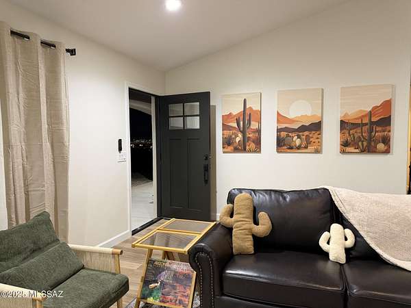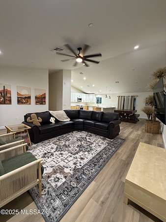 Modern Desert Living with Unmatched Views & Easy Access! Perched above the city with uninterrupted panoramic views of the Tucson skyline and mountain ranges, this stunning new-construction home blends modern comfort with rugged desert beauty. Whether you're sipping your morning coffee or catching a fiery desert sunset, you'll feel like you're living in a postcard. This spacious 4-bedroom, 3-bathroom home is filled with elevated finishes, including luxury vinyl plank flooring, a sleek open-concept kitchen with custom cabinetry and quartz countertops, and a spa-style primary bath with a soaking tub and dual vanity. The thoughtful layout includes a massive great room, ideal for entertaining or simply soaking in the natural beauty from every window. The land A little over 4 acres!! Furniture, Art, Washer Dryer and additional items not included