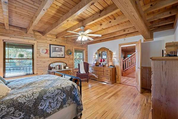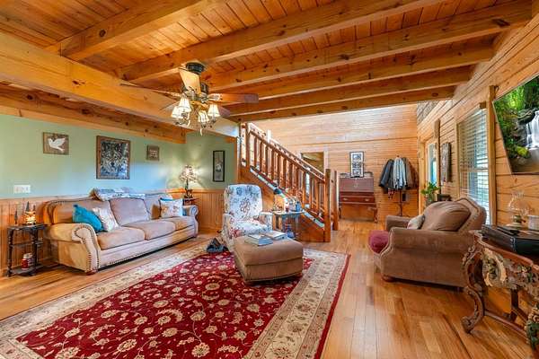 Nestled amidst the serene landscape, this captivating two-story log cabin offers a harmonious blend of rustic charm and modern comforts.Situated on a generous 5-acre parcel of unrestricted land, this property promises privacy, space, and endless possibilities.As you step inside you discover a home that seamlessly blends rustic charm. The wood shakes at the entrance set the tone for the home's warm and inviting ambiance, the large kitchen has ample space with pantry perfect for culinary enthusiasts.The property is adorned with three tranquil ponds, whether you enjoy fishing, bird-watching, or simply relaxing by the water's edge, these ponds are sure to captivate your heart.The RV storage parking ensures ample space for all your recreational vehicles, while several sheds offer convenient storage solutions for your tools and equipment.Enjoy the proximity to Gorges State Park just across the street so you can enjoy hiking trails and waterfalls.Additional acreage is available.