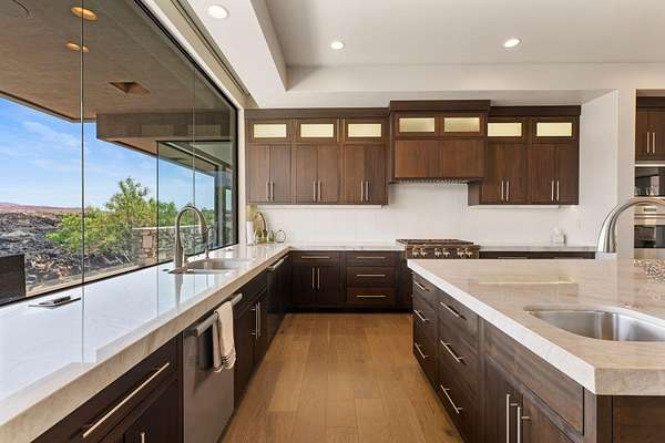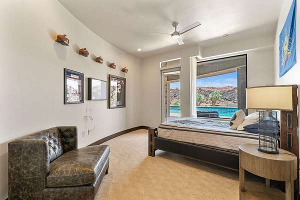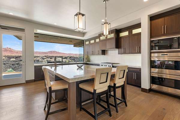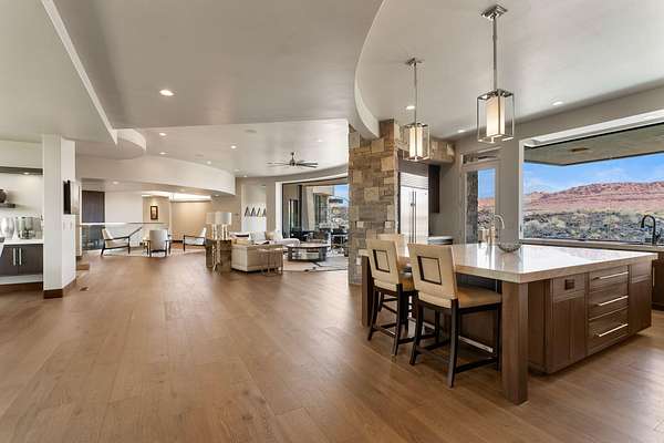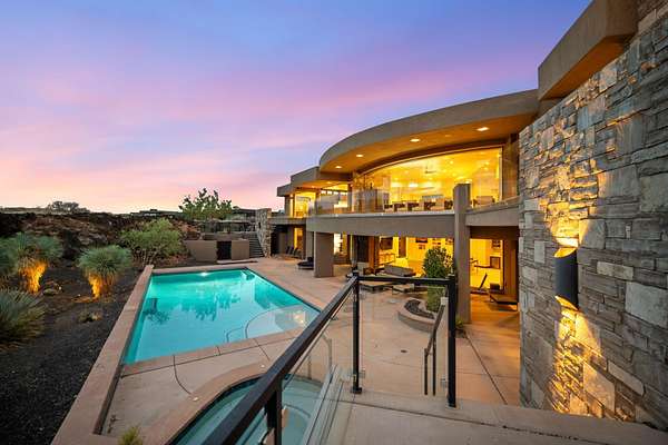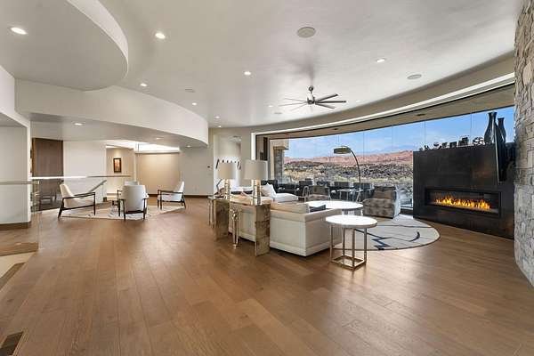 Welcome to your private desert sanctuary nestled in the heart of the prestigious Entrada at Snow Canyon Country Club. This one-of-a-kind estate sits on a rare 2-acre golf course lot and offers over 7,000 square feet of luxury living, designed to embrace the natural beauty of Southern Utah while delivering unparalleled comfort and sophistication. From the moment you arrive, you're greeted with panoramic, unobstructed views of Snow Canyon, creating a truly breathtaking backdrop that seamlessly blends indoor and outdoor living. Thoughtfully positioned to maximize privacy and scenery, this architectural masterpiece boasts an open-concept layout, soaring ceilings, and walls of glass that invite natural light and red rock vistas into every room. The gourmet chef's kitchen is the heart of the home, outfitted with top-of-the-line Sub-Zero and Wolf appliances, custom cabinetry, and an oversized island perfect for entertaining. Flowing effortlessly from the kitchen is a spacious great room with a sleek fireplace and retractable glass walls that open to an expansive outdoor living area. Step outside to your personal resort, featuring a custom-designed swimming pool, spa, outdoor kitchen, and shaded patiosall overlooking the golf course and framed by the awe-inspiring cliffs of Snow Canyon. Inside, the home offers 5+ bedrooms, multiple en-suite baths, private office, and a state-of-the-art indoor basketball courta rare amenity that elevates this home into a league of its own. The expansive primary suite includes a spa-inspired bath, dual closets, and private terrace access with sunrise and sunset views that are nothing short of spectacular. This is more than a homeit's a lifestyle. Located in the guard-gated Entrada community, residents enjoy exclusive access to championship golf, fine dining, fitness facilities, and the serene desert landscapes that make this region a world-class destination. Schedule your private tour today and experience luxury living at its finest in Entrada @ Snow Canyon.