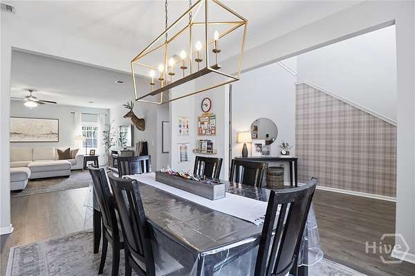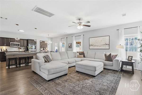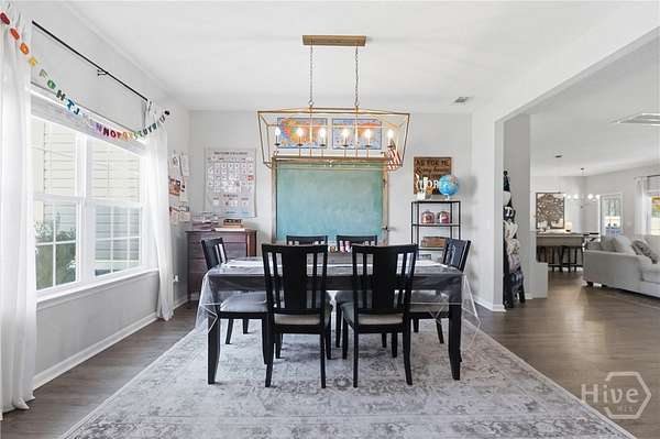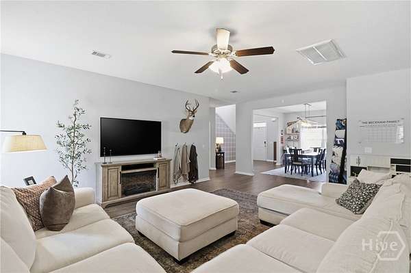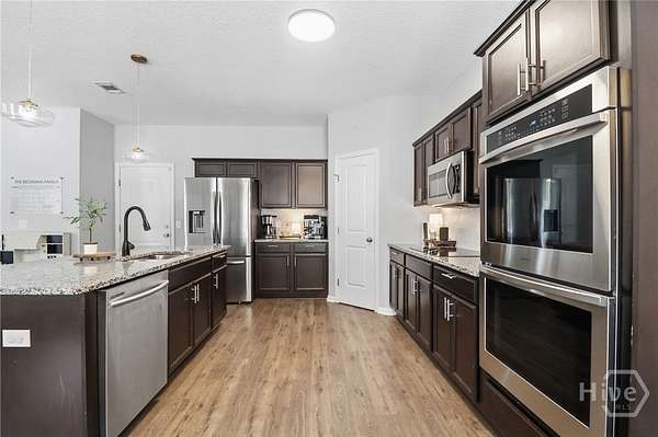 Your Home Search Ends Here! Nestled in the serene Huntington subdivision, this spacious 5 bedroom, 3-bath home offers over 2,800 sqft of comfort and charm. Beautiful hardwood floors flow through the dining area and main living area, leading to a cozy spacious family room and an open dining space filled with natural light. The kitchen features a large island, stainless steel appliances, walk-in pantry, and rich dark cabinets with enough counter space for all your needs. A full bedroom and bath on the main level provide flexibility for guests or a potential home office. Upstairs, you'll find three additional bedrooms with space for everyone and shared bathroom. The massive master suite and bath is everything you could want from the extra sitting space, walk-in closet, dual vanities, glassed shower, and soaking tub. Out back, you'll find your covered patio and porch perfect for relaxing evenings by the firepit.