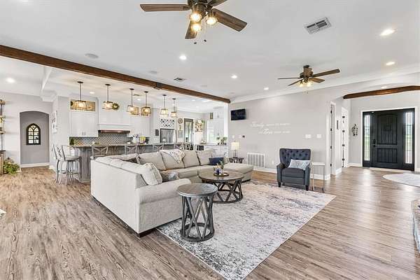 The home is located just west of I-35 outside of the City Limits of West. You will take the Tokio Road exit and go west 1.2 miles and turn right on John Nors Rd. Then you go a half mile and turn left on Bold Springs Ct. The house will be the 4th one on the right side on Bold Springs Ct.