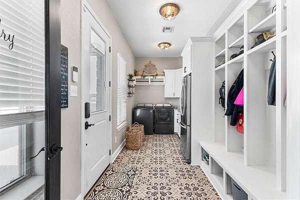 - Cooktop, Dishwasher, Double Oven, Garbage Disposer, Gas Cooktop, Gas Oven, Microwave, Refrigerator, Warming Drawer, Washer