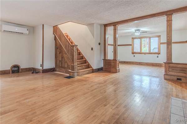 Charming Theresa Village home on the outskirts with HUGE 2.2-acre lot, 3 + car garage and sweet as can be 3-bedroom, 2 bath home with many recent renovations! Come check out this gem boasting a great location across from the park, close to Fort Drum and only 20 minutes or so to Watertown! So much original character, hardwood floors and molding! Spacious Kitchen, large dining area/Den and living room, porch and 1st floor bedroom and bath! Upstairs all recently redone and features 2 more bedrooms, bath and landing area great for home office! Paved driveway, tons of storage in the garage and so much more! This is a great find, call today!