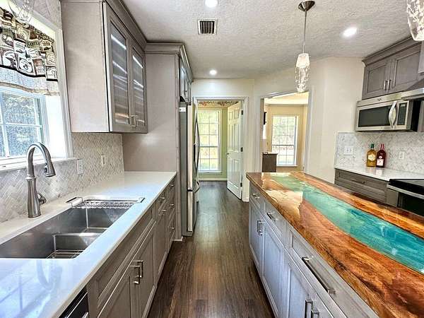 *SELLER OFFERING $10K UPFRONT CONCESSION TO BE USED AT THE BUYER'S DISCRETION* Escape to the peace and privacy of country living with this 2,656 sq ft split-level home on 5 acres in Headland. Tucked away at the end of a quiet dead-end road, the property features a spring-fed creek, abundant wildlife, and plenty of space indoors and out. GREAT location! Less than a mile away from Headland Country Club! The main level offers 3 bedrooms and 2 full baths, a remodeled eat-in kitchen with updated finishes, a dedicated dining area, and a spacious living room with a wood-burning fireplace. The nearly finished basement apartment, with private entrance and interior access, includes a kitchenette, eating area, full bath, and room/office with storage--ideal for in-laws, guests, or rental income. Additional features include an attached 2-car garage with a massive workshop, a 3-bay pole barn, and an RV power hookup with separate power pole. Nestled in the trees is a unique 800 sq ft wired treehouse ready to be finished as a studio, guest suite, or creative retreat. With its mix of space, functionality, and rare amenities, this property is perfect for multigenerational living, hobbies, or anyone seeking a private country retreat just minutes from town. A great property that provides seclusion and quiet living, while also still having ease of access into the surrounding areas! SUCH A UNIQUE HOME - THE PICS WILL NOT GIVE THIS HOME JUSTICE! Come view this property today!