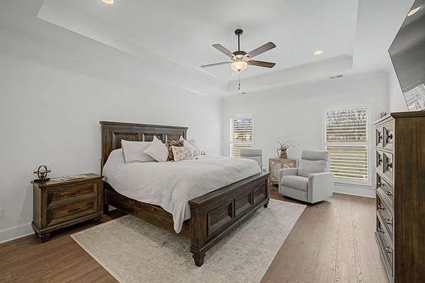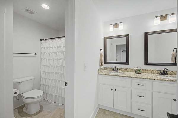 With 4 spacious bedrooms and 3 full baths, this home ensures room for everyone. The primary suite and a second bedroom are conveniently located on the main floor, while the upper level features two additional bedrooms, a large bathroom with linen closet and massive bonus room. The primary suite is a true retreat, offering separate vanities, a tiled shower, and ample space to unwind.