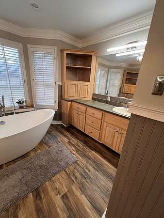 - Chair Rail, Crown Moulding, His & Hers Walk-In Closets, In-Law Floorplan, Kitchen Island, Lighting Recessed, Pantry, Separate Shower Primary, Split Floor Plan, Walk-In Closets, Wide Baseboard