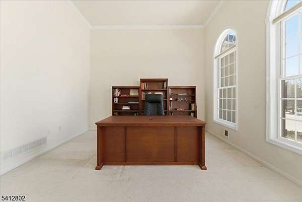 Set on 3 scenic acres in desirable Tewksbury Township, this distinctive crescent-shaped ranch offers a rare opportunity to own your dream estate in one of Hunterdon County?s most picturesque settings. The property is surrounded by a variety of mature ornamental trees, creating a peaceful and established landscape. Designed for comfortable one-level living, you are welcomed through the foyer into a dramatic vaulted ceiling living room that anchors the natural flow of the home, connecting the main living spaces with light and openness. The home features high ceilings and a thoughtful layout w/three spacious bedrooms, each offering its own walk-in closet and private bath. A dedicated home office overlooks the beautiful horse farm across the street, providing inspiring views and a serene work-from-home setting. The curved design embraces a private courtyard accessible from the kitchen, living room, and primary suite, an ideal space for outdoor dining, entertaining, or relaxation. A large unfinished basement offers excellent potential for add'l living space, recreation, or storage. With strong architectural bones and a stunning rural setting surrounded by preserved farmland and equestrian estates, this property presents an exceptional opportunity to renovate, customize, or elevate into a truly special country retreat. Convenient to Routes 78, 287, and 22, and a short drive to NJ Transit?s Gladstone Branch via Far Hills or Peapack stations for service to NYC. Home being sold as-is.