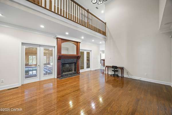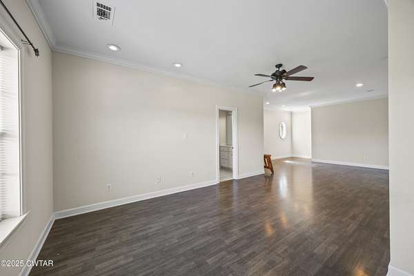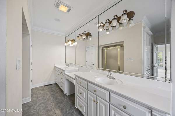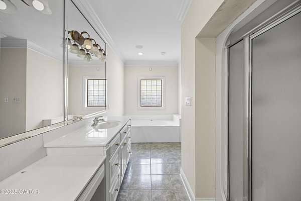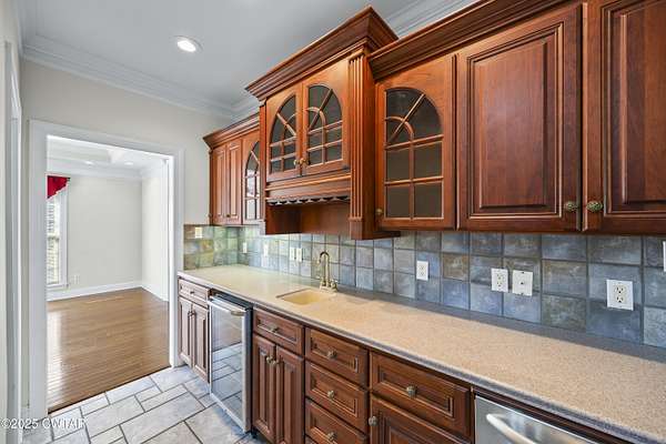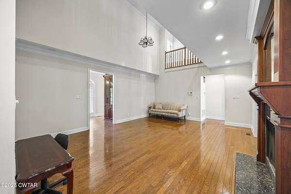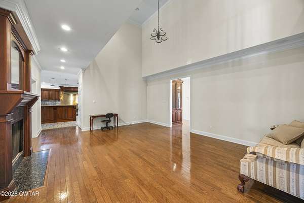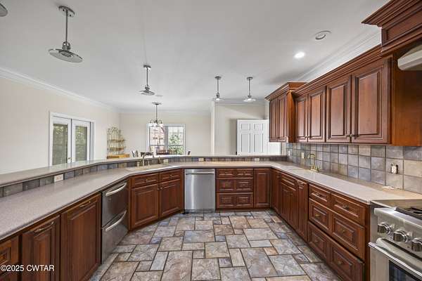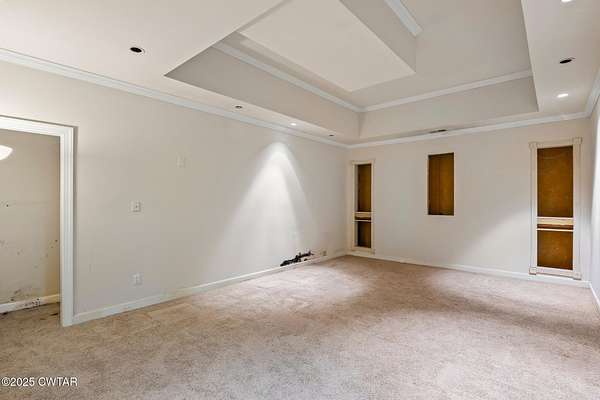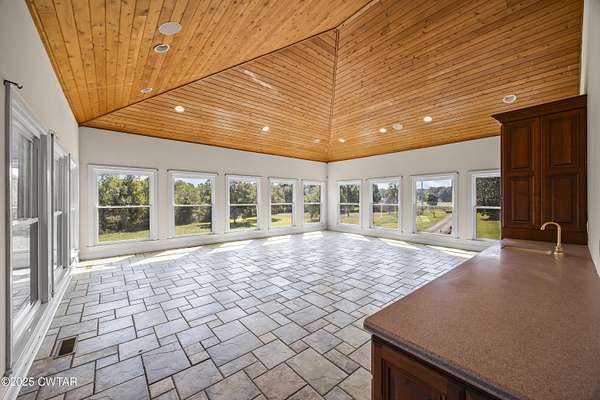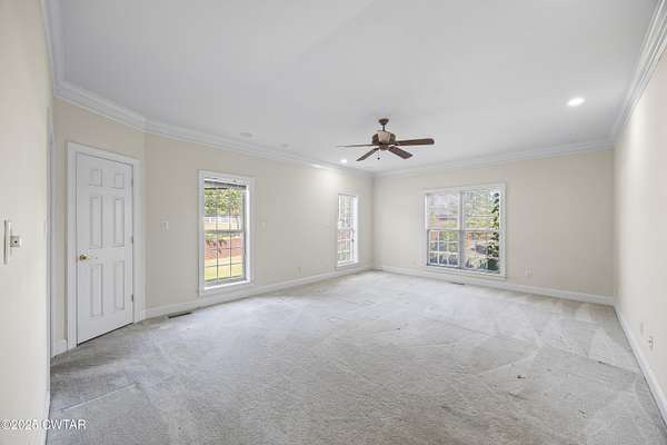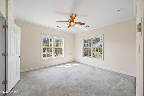 - Breakfast Bar, Ceiling Fan(s), Central Vacuum, Commode Room, Crown Molding, Double Vanity, Eat-In Kitchen, Entrance Foyer, Fiber Glass Shower, High Ceilings, Pantry, Primary Downstairs, Soaking Tub, Untextured Ceilings, Walk-In Closet(s), Wet Bar
