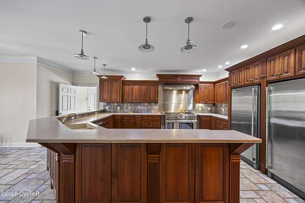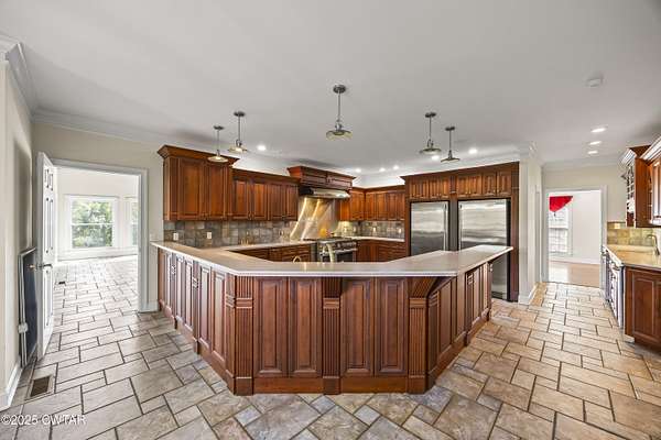 - Dishwasher, Disposal, Double Oven, Gas Cooktop, Gas Range, Gas Water Heater, Range Hood, Refrigerator, Stainless Steel Appliance(s), Wine Refrigerator