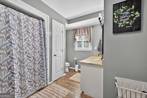 This is the home dreams are made of! Escape, entertain, and make memories in your own private oasis. Situated on nearly 5 acres in the heart of Grayson, the freshly painted 2380 Camp Mitchell boasts curb appeal. Rocking chair front porch? Check. Fenced-in yard with a pool? Check. Separate fenced pasture? Check. Functional barn with electricity, water, and two horse stalls? Check, check, check, and we haven't even covered the stunning interior. Updated LVP flooring throughout the main level greets you upon entry. The large living room features built-in bookshelves and a fireplace, inviting you to cozy up to your favorite book or movie. In the eat-in kitchen, you will find gorgeous cabinetry and granite countertops, overlooking the covered back deck. Host dinner parties in your formal dining room just off the kitchen. The ample primary bedroom and walk-in closet on the main level feel like a retreat all on their own. The upstairs level offers two large bedrooms, a second primary bedroom with ensuite, and a smaller bedroom- great for an office or nursery! The large bonus room proves to be the perfect entertainment space for a game room. Once you make your way to the full, finished basement, the surprises continue with a more-than-generous open area, a bedroom and full bath, an additional kitchen and second laundry room - the perfect in-law or guest suite! Step out into your well-manicured backyard and enjoy the view of the pond and creek, or cool off in the freshly relined pool. Tend to your horses, host a small wedding, or relish in the tranquility and privacy of your own property. You don't have to travel to have it all when 2380 Camp Mitchell Road is your home!