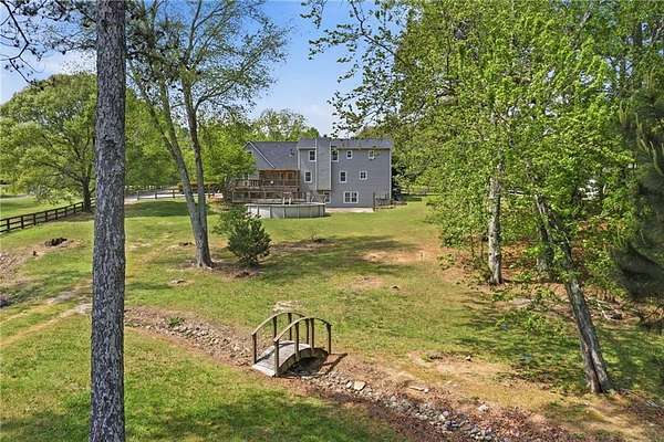 Country living in Gwinnett County!! Many people dream of living on a farm, but still want to be close to grocery stores, restaurants and shopping. Well, this is it! Nestled on almost 5 acres, this updated farm house has so much to offer! The rocking chair front porch welcomes you in to a charming foyer right off the formal dining room. Updated LVP flooring leads back to the large fireside great room. There are two owner's suites in this home, one on the main floor and one upstairs. The updated kitchen features stainless steel appliances, double oven, large pantry, breakfast bar and room for that country kitchen table. There is also a powder room and a large laundry/mud room on the main floor. Upstairs has three more bedrooms, large bonus room and bathroom, in addition to the second owner's suite with it's own ensuite bathroom. The finished basement offers so many possibilities for multi-generational living or a rental. it has a kitchen, bedroom, full bathroom, great room and it's own laundry area. But the backyard is what really separates this home from anything else around! You can lounge by the pool, hang out on the covered back deck and just take in the view. There is a bridge over a gentle flowing creek that leads back to a barn with a stable, and a huge pasture for horseback rides. All this in the Archer school district, just minutes away from Grayson, Lawrenceville & Snellville!