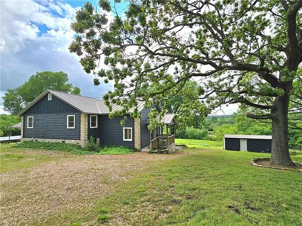 The views are spectacular from this custom-built home on 6+ acres with Kings River frontage! You will find a warm and inviting, split level, home that is full of beautiful finishes throughout including hardwood floors and cedar plank ceilings. The kitchen boasts of custom cabinetry, granite countertops, a massive pantry, stained concrete flooring with radiant heating, along with all the appliances. Your oasis awaits just off the primary bedroom. There, you will find a private balcony overlooking the river and countryside to watch the sun set. At the end of the hallway, you will find a flex space with a half bath and separate entrance that could be used for a home office, game room, additional bedroom, or more. Other amenities include walk in closets in all bedrooms, central vacuum, tiled walk-in showers, jetted tub in primary, 85-gallon water heater, and laundry sink. Fenced on 3 sides. Multiple outbuildings for livestock and storage for your kayaks, canoes, and fishing gear! Make this your home! Call today!