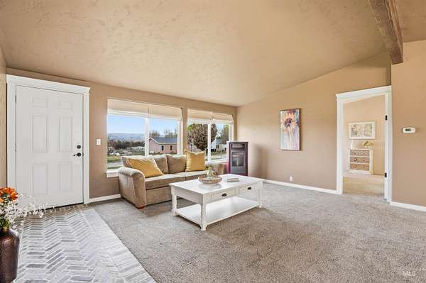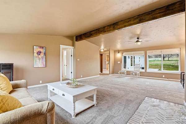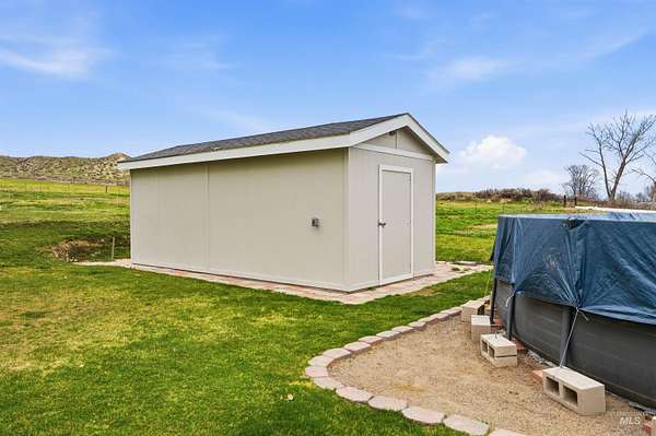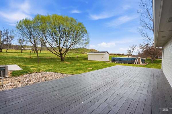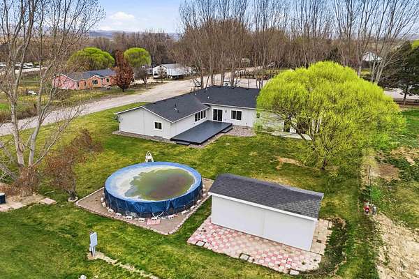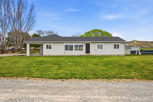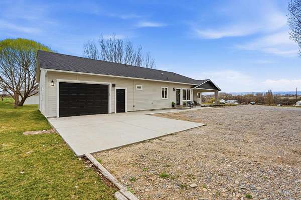 Experience country living at its finest with this 2,349 sq ft, 4 bed, 3 full bath home built in 2015 and remodeled in 2022 and 2026. Situated on 3.56 acres with beautiful surrounding views, this property sits at the end of a private road in a small community, connected by walking/riding paths between properties. Enjoy the freedom of rural living with no HOA or CC&Rs. The community also features a shared irrigation pond for pressurized irrigation use. Recent updates include a completely remodeled primary bathroom featuring a soaker tub and walk-in shower, a new pellet stove, new exterior paint, a newly coated garage floor and outside deck, new lighting, plumbing fixtures, faucets, kitchen vent hood, as well as new carpet and a new water heater. The spacious kitchen features double ovens, a large center island, and a walk-in pantry. The home also offers vaulted ceilings, a desirable split bedroom floor plan, and a Kinetico water softener and reverse osmosis system. There is an attached oversized single car garage with two roll-up doors. The property also features RV parking with sewer dump and power hookups, an above ground pool, and a huge fenced pasture ready for livestock. A massive graded and leveled pad is ready for a future shop, with over $10,000 in added power including two 200-amp electrical services already installed. Enjoy incredible views and rural country living.