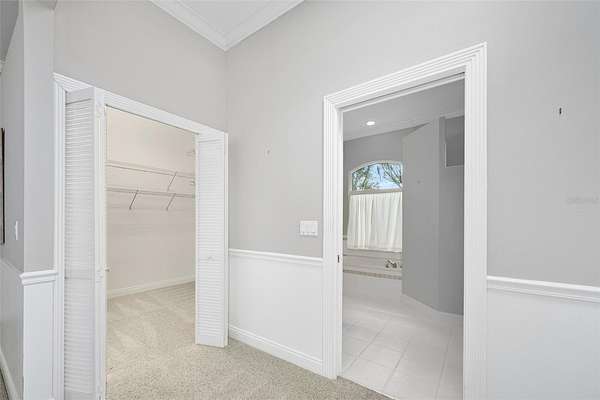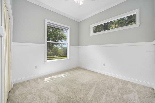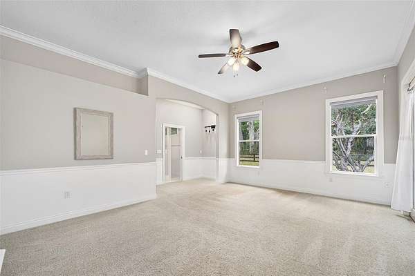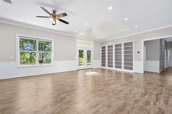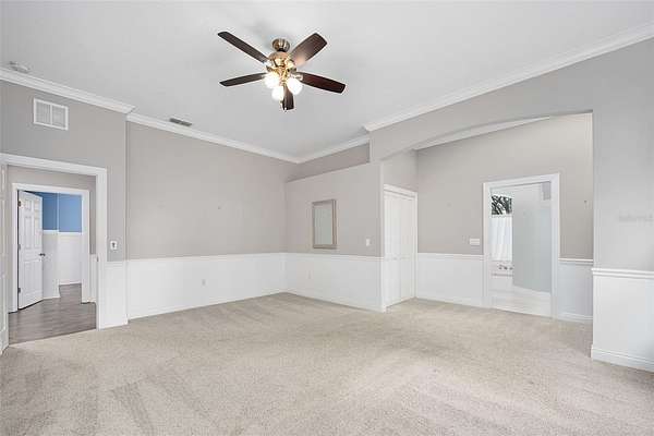 - Built-In Features, Ceiling Fans(s), Crown Molding, High Ceilings, Primary Bedroom Main Floor, Tray Ceiling(s), Window Treatments