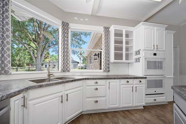 Highlights of the home include newer Luxury vinyl flooring, appliances (2019-2026), 2019 roof, 2018 HVAC, 2018 water softener, many electrical updates, new office French doors, crown molding throughout, built-in desk and shelving, and a spacious kitchen fully equipped with double built-in ovens, a 5-burner propane cooktop, a breakfast area, walk-in pantry, and so much more.