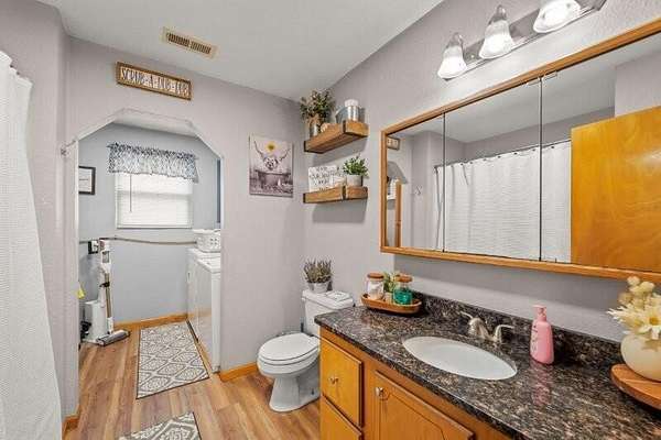 - Ceiling Fan(s), Eat-In Kitchen, High Speed Internet, Main Level Laundry, Master Bathroom, Master Downstairs, Walk-In Closet(s)