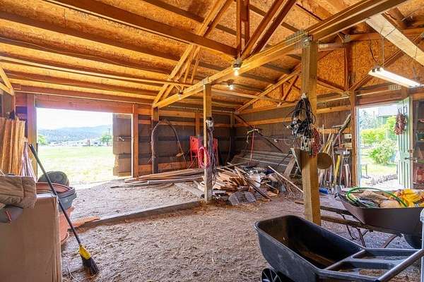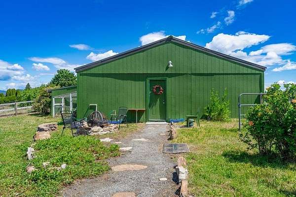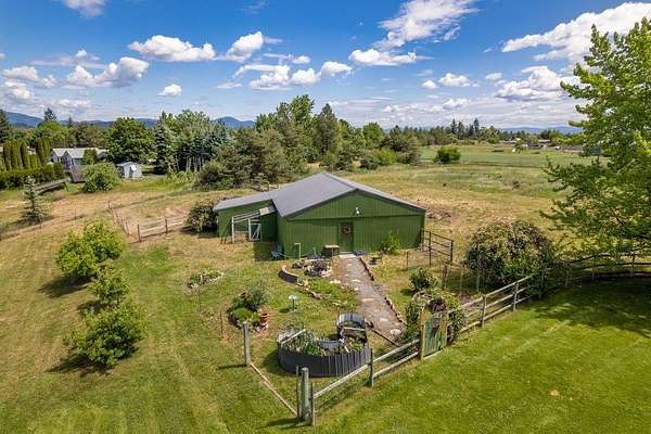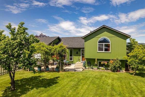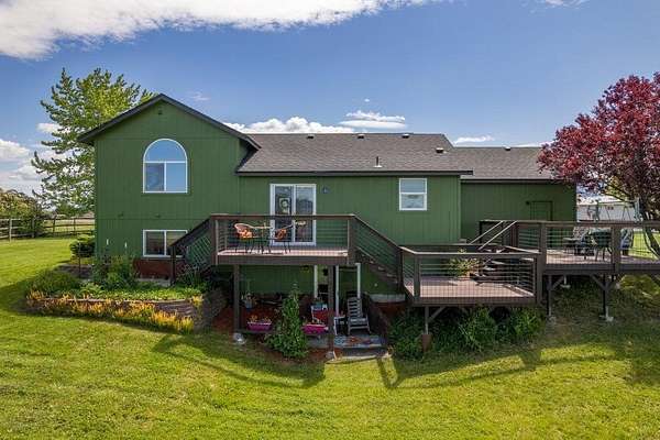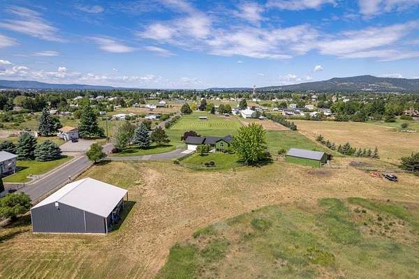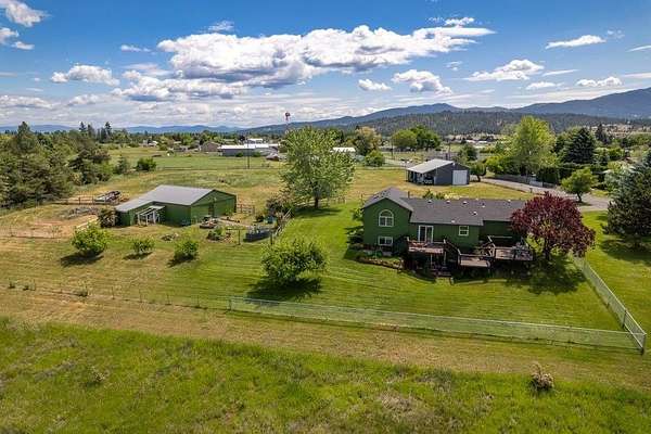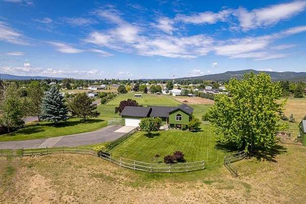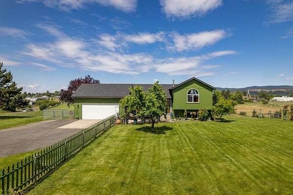 Artistic Farmhouse with stunning sunset views. This charming, well-maintained farmhouse features custom touches throughout. Set on nearly 5 acres of fully fenced and cross-fenced land if offers both beauty and functionality. The inviting front porch is beautifully landscaped, creating a warm welcome. Enjoy a raised garden by the barn along with 4 apple trees, 1 plum tree, strawberries, and raspberries. The barn(30x36) has built-in work benches for craft events and is ready for your animals as well. Shop(40x30) has 2 drive-in doors, a Hydroponic radiant heat system, built-in compressed air, and is insulated. The deck has an electrical hookup for a hot tub, perfect for unwinding while enjoying the views. Home is located close to the Spokane River and the Centennial Trail. With serene views all around, this home offers a peaceful retreat while providing modern amenities. New roof 2022. Don't miss out on the unique property!