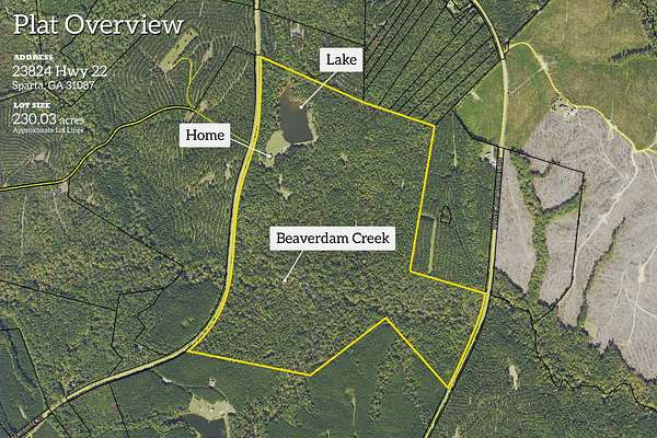 Discover this peaceful 3-bedroom, 2-bath home (approx. 2,080 sq ft), built in 1991 and set on roughly 230 acres of beautiful Hancock County land. Located just east of Sparta, this property offers a rare combination of comfortable living space and expansive acreage, perfect for outdoor activities, creative projects, or simply enjoying quiet country living. Inside, you'll find an open layout with laminate flooring throughout, two full baths, and large windows that bring in plenty of natural light and views of the surrounding landscape. The metal roof and wood exterior provide durability and low-maintenance appeal. Outside is where this property truly shines. With approximately 230 acres, the possibilities are endless, create private trails, explore timber potential, build recreation areas, or simply take in the wide-open views and peaceful natural setting. Whether you're dreaming of an equestrian property, a hunting lodge, hobby farm, or a private retreat, this land offers the space to bring big ideas to life. Conveniently located along Highway 22, the home offers a balance of accessibility and seclusion. The property is served by the Hancock County School District. If you're looking for more than just a home, if you want land, privacy, and opportunity, this property stands out. Contact me to schedule a private showing and experience all that 230+ acres in central Georgia has to offer.
