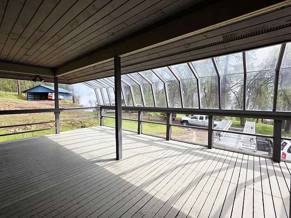 Great views from this beautiful home with southern exposure on the NE edge of the Chewelah valley. South fork of Chewelah Creek runs through it and borders a chunk of state land on the north. This 3,342 Sq. ft floor plan features amazing kitchen with island, granite counter tops, extra corner sink and access door to huge covered deck and sun room. Main tiled entryway leads to sunken living room with hardwood floors, view windows and brick hearth for woodstove. Full daylight basement has access to 2 car garage and ground level outside. Basement has huge rec room, bedroom, bathroom, shop space and multiple storage rooms, wood stove insert and built in book shelves. Barn and shop allow for equipment storage and animals.