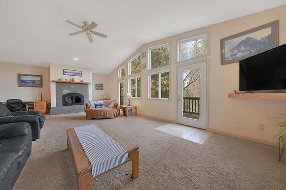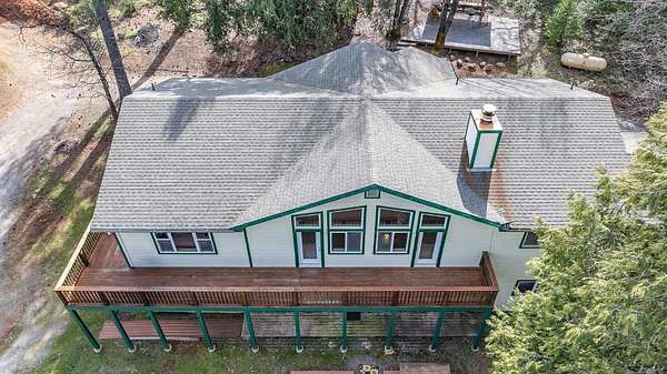 This stunning, custom-built 3-bedroom home, offered by its original owners, combines modern design with spacious living. Featuring 9-foot and vaulted ceilings throughout, the open floor plan creates an inviting and airy atmosphere. A large downstairs game room opens onto an expansive outdoor deck, perfect for entertaining. The living room boasts a Xtrordinair wood-burning fireplace with a thermostat and 388 CFM blower, efficiently heating the entire home while complementing the granite kitchen countertops with a matching hearth. This well maintained property has seen significant updates, including 32 new windows and a new A/C system in 2020. The main house includes an attached one-car garage plus an additional 450 sq. ft. of unfinished space. A detached garage/workshop provides over 1,000 sq. ft. of unfinished potential, including an upstairs room with a half bathideal for a guest apartment or income opportunity. Perched on a private hilltop, this property offers breathtaking snow-capped mountain views and abundant wildlife, all accessible via a paved, county-maintained road with a private gated entrance. Wraparound decks surround the home, maximizing the panoramic views. The gently sloping 5.24-acre parcel features a circular driveway, majestic oak, sugar pine, and cedar trees, a fenced garden, and a golf putting area. Conveniently located less than 20 miles from Jackson and 60 miles from Sacramento, it provides both seclusion and accessibility.