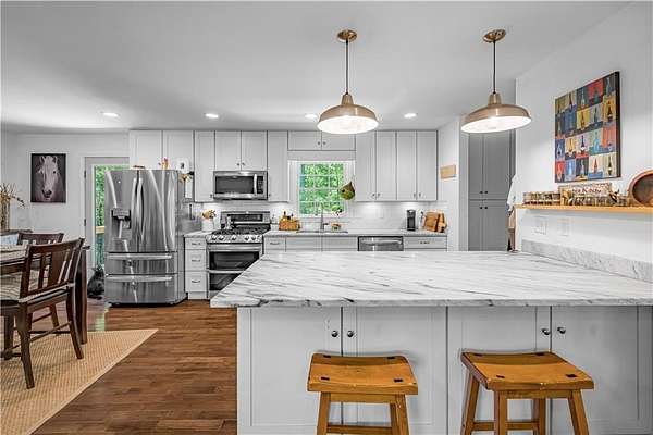Tucked away on 4.5 picturesque acres in the heart of Cherokee County, this stunning four-sided brick ranch offers the kind of lifestyle buyers dream about-but rarely find. Just minutes from charming historic downtown Ball Ground, this property blends peaceful country living with easy access to local dining, shops, and community events that give the area its small-town charm. Inside, the home has been thoughtfully updated to reflect both comfort and style. A flowing, open-concept layout creates an inviting space for everyday living and entertaining, while the beautifully renovated kitchen features stainless steel appliances, modern finishes, and plenty of room to gather. With four generously sized bedrooms and two updated bathrooms, there's space for everyone to feel right at home. Step outside-and this is where the magic really happens. A brand-new, expansive custom deck overlooks the rolling acreage, offering the perfect place to unwind, host, or simply take in the peaceful surroundings. Whether it's morning coffee or sunset dinners, this space was designed to be enjoyed. For those seeking a true equestrian or hobby farm lifestyle, the property delivers in every way. The custom-built barn is both functional and beautifully crafted, complemented by a professionally designed Ramm cable arena, multiple stalls, tack room, office space, and electricity already in place. The fenced pastures are lush and ready-ideal for horses or even an income-producing boarding opportunity. A full basement provides additional flexibility for storage, expansion, or future customization-making this home as practical as it is beautiful. Beyond the property itself, Ball Ground is known for its welcoming community, historic downtown, local festivals, and access to outdoor recreation-from nearby trails to the foothills of the North Georgia mountains. It's a place where life slows down just enough to enjoy it. This is more than a home-it's a lifestyle opportunity with space, privacy, and purpose!