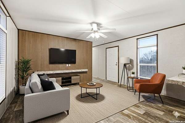 Experience the versatility and wide-open potential of this unique 21-acre property featuring two separately addressed tracts being sold together. With two independent residences, this property offers flexible living arrangements and potential income-producing opportunities. Each home includes its own septic system, power, and water connections, allowing for independent functionality on both tracts. The primary residence, situated on approximately 11.13 acres, is a 2018 double-wide manufactured home offering 3 bedrooms, 2 bathrooms, and approximately 1,440 square feet. The open-concept layout features an island kitchen, spacious living area, and a primary suite with separate tub and shower. Outdoor amenities include a back deck with attached screened porch (Florida room) and an animal pen. The second residence, located on approximately 10.16 acres, is a 2022 single-wide manufactured home offering 3 bedrooms, 2 bathrooms, and approximately 1,216 square feet. This tract also includes a back shed and animal pen. Additional improvements include a gated entry and a large on-site shipping container with professionally installed power outlet suitable for RV hookup, along with an RV septic connection. The land provides opportunities for agricultural and recreational use, offering space for equipment, livestock, or outdoor activities. Whether seeking multi-household flexibility, agricultural use, or the option to reside in one home while generating income from the other, this property presents a range of possibilities in a serene country setting with expansive skies and scenic sunset views. Conveniently located approximately 12 miles from Devine, under an hour to downtown San Antonio, and about 45 minutes to Lackland AFB.