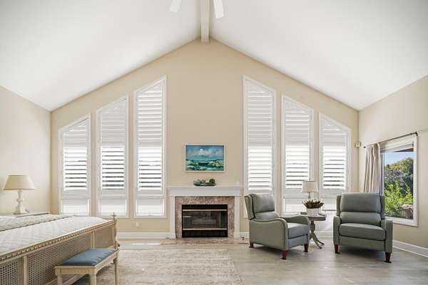 Beautiful single-level home in the sunny, desirable York Hills Estates. This spacious residence offers 3 bedrooms, 2.5 bathrooms, and approximately 3,300 sq. ft. of living space. The home features three fireplaces, hardwood floors, and plantation shutters throughout. Updated bathrooms add comfort and style, while the thoughtful floor plan provides generous living and entertaining spaces. The property sits on beautifully landscaped grounds with peaceful golf course views, creating a private and serene setting. Outdoor areas offer a true garden sanctuary with mature landscaping and inviting spaces to relax and enjoy the surroundings. A detached artist studio, also surrounded by lovely landscaping, provides a versatile space ideal for creative use, a home office, or a quiet retreat. An exceptional opportunity to own a spacious single-level home in one of the area's most desirable sunny locations.