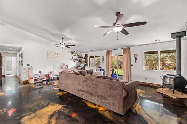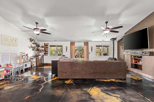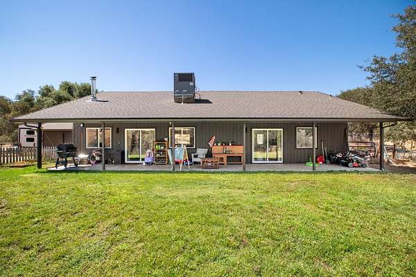 Property Highlights: ~3 bedrooms | 2 bathrooms | 1,937 sq ft ~1.5-acre lot in Copper Cove with lake access ~Open-concept living, dining & kitchen ~Fresh interior & exterior paint ~New flooring with custom epoxy finish ~All new appliances ~New HVAC, thermostat, whole-house fan & newer water heater ~100-year-old reclaimed mantle ~RV hookup ~Fenced & cross-fenced with electric gate & fencing ~Chicken coop & new kids' playground Updated 3-bedroom, 2-bath home in Copper Cove, where you'll enjoy access to Lake Tulloch just minutes away. Set on 1.5 acres, this property combines modern upgrades with rustic charm and plenty of outdoor space. Step inside to an inviting open-concept living, dining, and kitchen area. The home has been freshly painted inside and out, and features new flooring with a custom epoxy finish, all new appliances, and new light fixtures throughout. A stunning 100-year-old reclaimed mantle adds warmth and character. Practical updates include a new HVAC system, thermostat, whole-house fan, and newer water heater. The property is fully fenced and cross-fenced with an electric gate and electric fencing, ideal for pets and extra security. Outdoors, you'll find a chicken coop, a brand-new kids' playground, and an RV hookup. This home truly has it all modern comforts, unique character, and plenty of room to live, play, and grow. Don't miss the opportunity to make it yours!