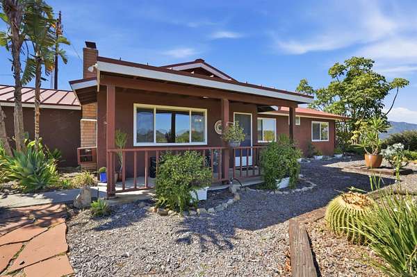 Welcome to your private Fallbrook retreat where peaceful country living meets the beauty of North San Diego County. Ideally positioned on nearly 4 acres, this charming single-story home offers 3 bedrooms, 2 bathrooms, and approximately 1300 sq ft of comfortable living space, surrounded by breathtaking natural scenery & distant ocean views. Enjoy the best of both worlds with a truly unique location; approximately 25-30 minutes to both Fallbrook and Temecula. While Fallbrook is known for its charm and rural appeal, Temecula, just as accessible, offers a vibrant lifestyle w/ expansive shopping, dining, wineries, & city conveniences. Many are surprised to discover how centrally located this home truly is. Built in 1974, the home blends timeless character with thoughtful upgrades, including a durable commercial-grade metal roof, a fully paid-off Tesla battery system providing energy efficiency, reduced utility costs & peace of mind during power outages.The property is rich with mature landscaping, 14 varieties of fruit trees, and gardens creating a true farm-to-table lifestyle. Enjoy mountain views, wide open space, fresh breezes & the serenity that only Fallbrook's rural setting can offer while still being part of San Diego County.An additional detached structure presents incredible potential for an ADU, guest house, studio, or multi-generational living setup.If you are seeking privacy, sustainability, or a peaceful escape, this unique property delivers the best of country living with scenic views, flexibility, and access to both charming countryside & nearby city amenities.