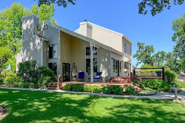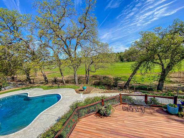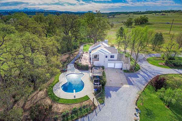 Creek-front home on Cow Creek - 16 Acres, Custom Home, Barn, Pool & Meadow Setting. Set along year-round Cow Creek, this beautiful 16 acre creekside property offers a rare combination of privacy, natural beauty, and comfortable country living just minutes from Palo Cedro and Redding. Mature oaks, open meadow, and a park-like setting create an exceptional backdrop for this well-crafted 3,107 sq. ft. custom home. The 4 bedroom, 4 bathroom home features vaulted ceilings with western red cedar, expansive windows, and warm natural finishes including solid oak flooring, clear redwood accents, and vertical grain Douglas fir doors. Separate living and family rooms each offer inviting gathering spaces, complete with wood-burning fireplace and stove. The well-appointed kitchen features solid cherry cabinetry, granite countertops, dual ovens, and a six-burner gas range, with easy access to the formal dining room and outdoor entertaining areas. Upstairs, the primary suite enjoys beautiful natural light and views overlooking the creekside meadow below, along with dual walk-in closets and a spacious en-suite bath. A private balcony provides the perfect place to enjoy quiet mornings while watching deer move through the property. Outdoor living is a highlight, with a large back deck spanning the length of the home leading down to the pool and outdoor kitchen area, complete with a commercial stove and bar top--ideal for entertaining and relaxing in the peaceful surroundings. The property is well suited for horses, livestock, or hobby farming with a barn featuring a tack room, equipment storage, and three stalls with paddocks, along with a shop building that includes a large walk-in refrigeration room. Cow Creek flows year-round and offer some fun warm-water fishing opportunities for bass. The creek hosts King Salmon spawning runs in the fall, providing some exciting viewing opportunities as these fish splash and spawn. During cooler months large rainbow trout occasionally move upstream from the Lower Sacramento River, creating unique backyard fishing opportunities. Wildlife is abundant with deer, turkey, quail, and waterfowl frequently seen along the creek corridor. Conveniently located just minutes from Palo Cedro and about 15 minutes to Redding, this special property offers the rare opportunity to enjoy private creekfront acreage with a beautiful home and usable land while remaining close to town.