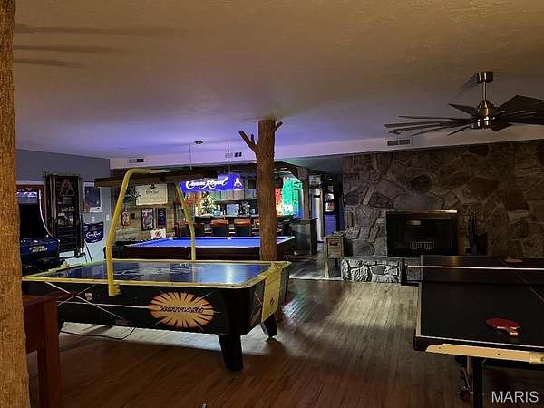 Spectacular Riverview Home!!! Nestled on a hilltop is this 2,294 sq ft m/l home with wood and ceramic flooring, a full walkout basement, loaded with amenities, and an amazing view of Current River. There are upper and lower balconies, total of 6 bedrooms/6 bathrooms(heated floors), an office, 2 laundry areas, a massive game room, full bar, a fully furnished theatre room with state of the art equipment and 12 reclining seats. There is a 40 x 60 pool house with a 20 x 40 heated, inground, saltwater pool and a 6 man hot tub with a full bathroom and bar as well as a deck for enjoying the amazing views. There is 3,880 sq ft m/l of decks for your outdoor enjoyment. The property also consists of a 40 x 80 metal shop with 2 garage doors, a 30 x 40 metal shop with 1 garage door, an outdoor half basketball court, as well as a fully stocked pond. All this is on 58.32 acres m/l of land that has multiple kinds of wildlife. Properties like this in the Ozarks are rare. Schedule your viewing today.