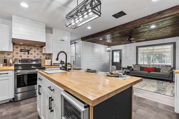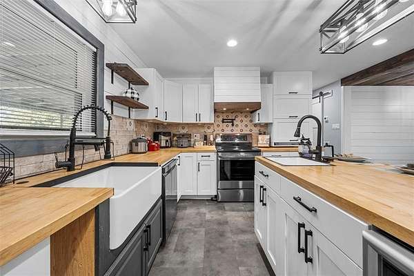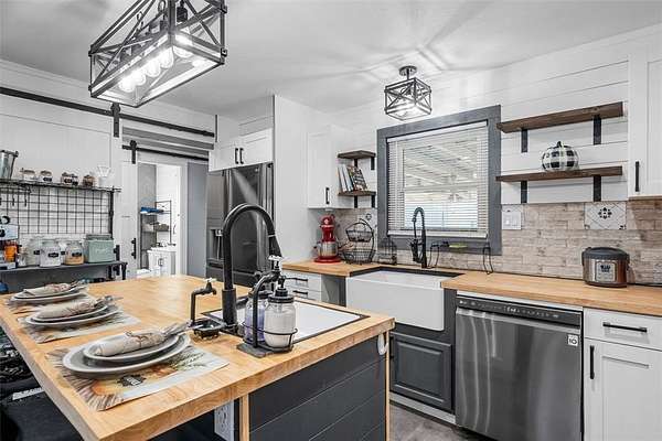 Nestled on a sprawling 6.48-acres, this 3-bedroom, 3-bathroom home is a masterpiece of rustic charm and modern convenience. Completely renovated down to the studs, no detail was overlooked, with new electrical, plumbing, and a thoughtfully designed interior blending style and functionality. Step inside to find an open and inviting floor plan, where rich wood accents and rustic finishes create a cozy yet sophisticated ambiance. The kitchen features updated appliances, plenty of storage, and butcherblock countertops that are perfect for entertaining or quiet nights at home. The spacious bedrooms and luxurious bathrooms offer comfort and privacy, making this home ideal for families or hosting guests. The property is truly a paradise for those who love the outdoors. A barn for your animals and a large shop provide endless possibilities for hobbies, storage, or livestock, while the expansive acreage offers space to roam, garden, or simply enjoy the serene country setting.