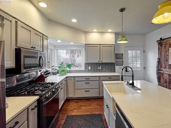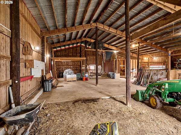 Trendy Farmhouse on 4.8 acres, Shop, Barn and detachedOffer timeless Farm Appeal found here at this 4.8 +/- acre propertyin Beavercreek. This Trendy Small Farm offers a unique andcharming blend of modern comforts and rustic appeal. Over 2,000square feet of Farmstead Warmth. This Early 1900's Farmhouse is atreat! Vintage Farm Style with modern touches throughout. Thekitchen boasts a central island with a sink and eat-at bar, along withan extra-deep pantry for ample storage, soft-close kitchen cabinetryand stainless appliances and quartz countertops for a polished, high-endfeel. A beautiful, reclaimed barn door adds character to thelaundry room. The large dining room offers fantastic views of theproperty, ideal for entertaining or relaxing. The home is filled withnatural light, featuring 22 windows throughout the living room alsohas fantastic views (from a multitude of windows and sliding glassdoor) of your property as well as wood floors and high ceilings and acozy pellet stove provide comfort in winter along with the gasfurnace. The heat pump provides cool in the summer. Enjoyluxurious heated tile floors in the bathrooms and included in thesale is a driveway alarm, a bus stop, solar motion-activated light,and hardwired security cameras for added peace of mind. Stepoutside and relax on the 30'x10' deck off the Wraparound porch orenjoy the outdoor kitchen and patio area. The spacious 40'x60' barnfeatures 1-3 stalls with stall doors and includes concrete flooring inthe chicken coop and overhead hay storage. A removable goat areaadds versatility to the barn space opens to pasture. 60'x30' shop/5-bay garage includes a separate meter, 200-amp service, a workshop,and a canning storage room with a water heater and pump tank.Each bay measures approximately 12'x30', with overhead storageand concrete floors. The property also includes a green house, apple and pear trees, a sunny garden area,a 60'x12'RV parking area with 30-amp service, and more.