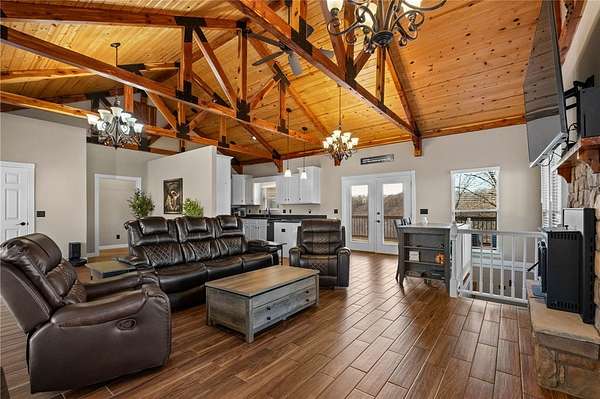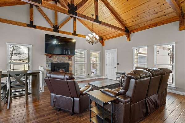 Nestled quietly outside city limits, but within 35 minutes of Downtown Bentonville, this home blends country charm with modern comfort. The home features a paid off whole home solar system and an insulated 30x40 shop with mini split perfect for tools, vehicles or hobbies. The generous floorplan spans over 2,700 square feet with three bedrooms and two and a half baths, giving a perfect balance of private and shared living areas. The main level features the primary bedroom, and the other two bedrooms are downstairs. Whole Home Solar System installed in 2025 and conveys with the property, with the exception of the battery backup system. The property's large acreage suits multiple uses, whether you want room for gardens, outdoor entertaining, animals, or future outbuildings. Additional hookup for washer/dryer downstairs. Water system features a Softener, Iron Filter, Sediment Filter, UV Filter and Reverse Osmosis drinking system in the home, and is serviced by Culligan Water.