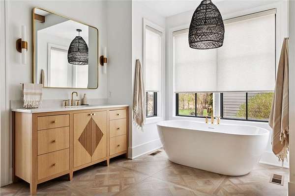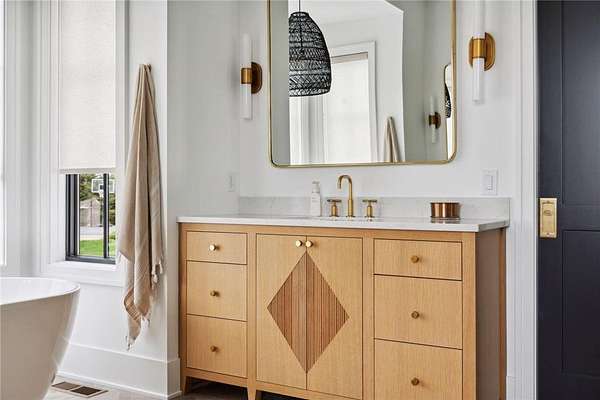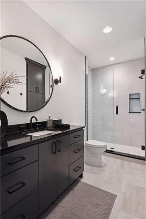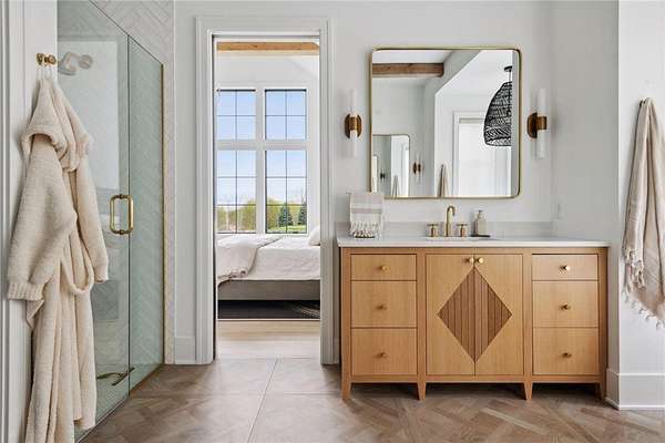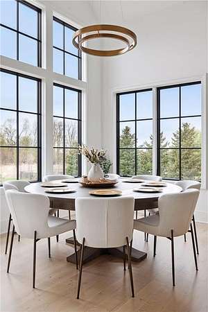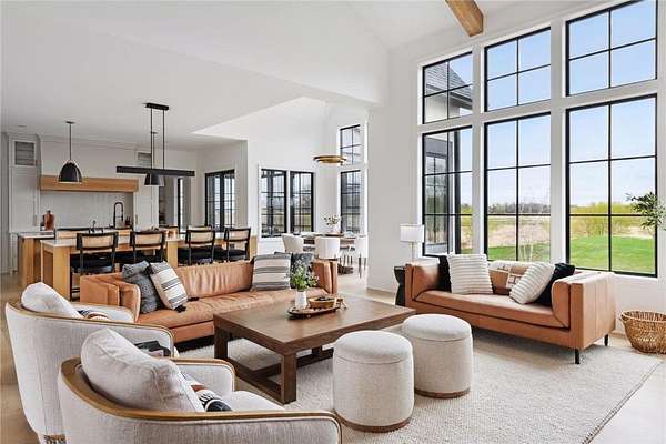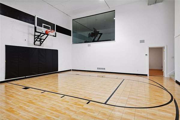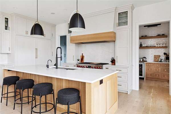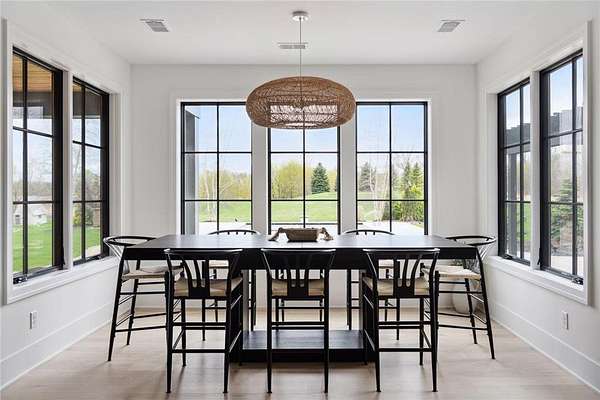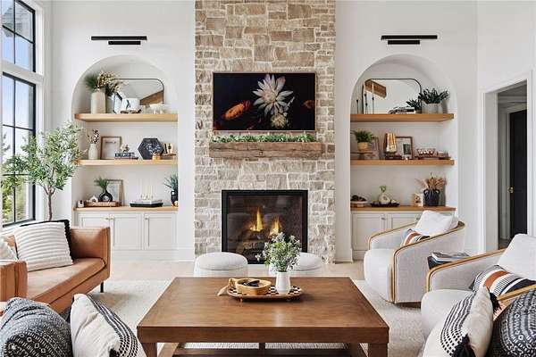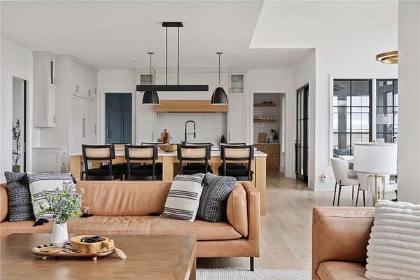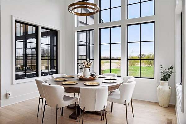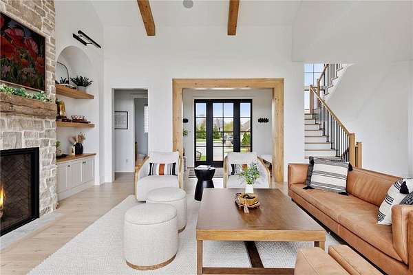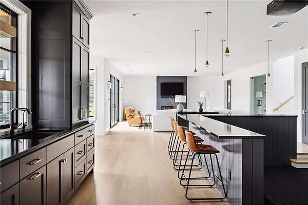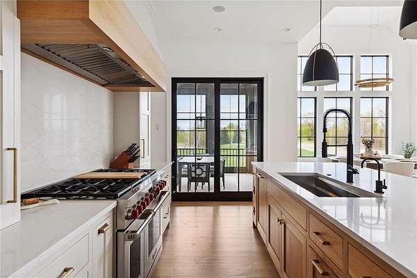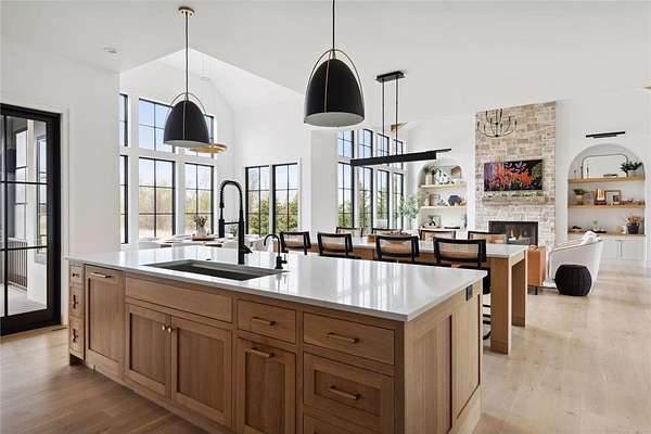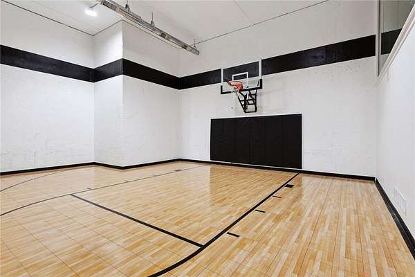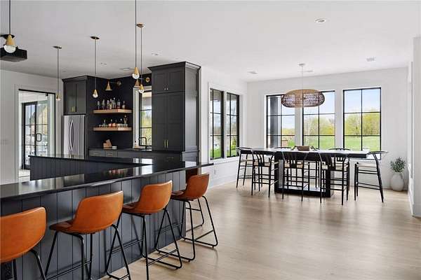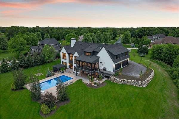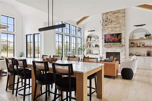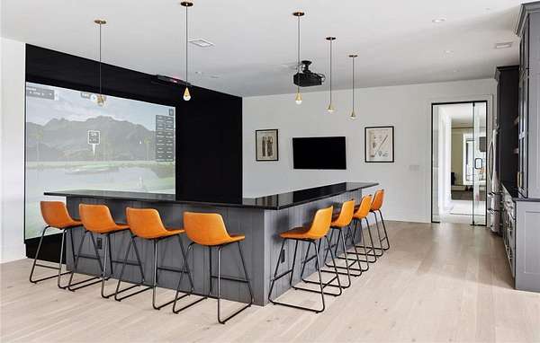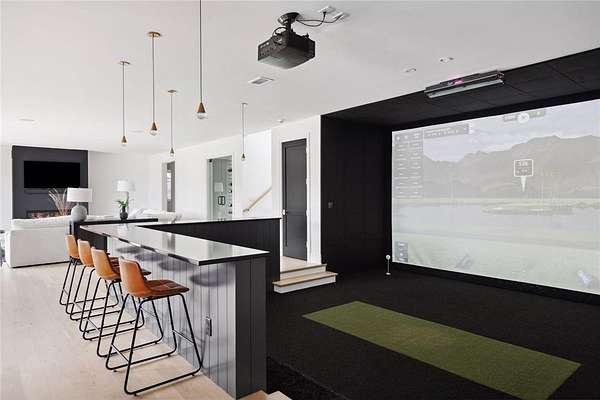 Set on over two pristine acres, this residence is not just a home, it’s a statement. A true architectural showpiece, masterfully designed by Eskuche Design Group and expertly built by Stonewood, it blends elevated design with resort-level living in a way that feels both intentional and unforgettable. From the moment you arrive, the scale and craftsmanship are undeniable. Expansive windows, soaring ceilings, and wide-plank white oak floors create a sense of quiet luxury, while every detail, from the custom millwork to the oversized statement entry door, speaks to a level of finish rarely seen. The vaulted family room is a true centerpiece, anchored by a dramatic floor-to-ceiling stone fireplace that brings warmth, texture, and architectural presence to the space. At the heart of the home, the kitchen is designed to impress and perform. Anchored by professional-grade appliances and layered in refined textures, it flows seamlessly into a stunning scullery kitchen, fully outfitted with its own appliances and prep space, allowing for effortless entertaining without ever compromising the main living experience. Whether hosting large gatherings or intimate evenings, this space was built to deliver. The lifestyle amenities are where this home truly separates itself. A dedicated golf simulator, featuring 4K projection and a premium launch monitor, offers year-round play, while the indoor sport court creates an energy that’s hard to replicate. A private wellness experience awaits with a Clearlight infrared sauna, perfectly paired with the home’s fitness spaces to create a true in-home retreat. Step outside and the experience continues. A resort-style saltwater pool anchors the backyard, surrounded by professional landscaping and multiple areas to gather and unwind. For the golf enthusiast, a private green paired with dual tee boxes offers the rare opportunity to step outside and play a few holes of your own, no tee time required. Completing the home is an oversized heated four-car garage designed with both function and flexibility in mind, offering ample space for vehicles, storage, and hobbies alike. Technology is seamlessly integrated throughout, with whole-home automation, lighting, audio, and security systems working quietly in the background to enhance daily living. This is more than a home, it’s a private retreat, a place where design, function, and lifestyle come together at the highest level.