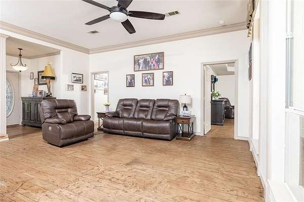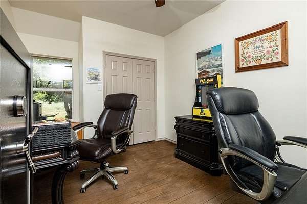 From Hwy 67 turn South on County Road 2021 and enjoy the scenic drive approx .75 mile to gate. House on Right Side.