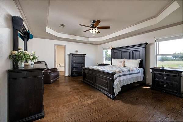 Welcome to your scenic slice of the Country in Ridgeview Estates. This could be your dream country retreat! This flat, usable property offers space for Horses, Livestock or build your dream arena or additional barns. Located minutes from horse trails and riding in Dinosaur Valley State Park and centrally located between Cleburne & Stephenville (Off Hwy 67) and easy access to Granbury. with schools just 3 miles away. enjoy your 10.98 AC +or- ac open land with Diving Pool with Waterfall and Baja Shelf. 56 X 74 open patio area perfect for sunrise views. Home offers Open Living, Dining overlooking the pool. Family room with cozy fireplace off Kitchen and Breakfast nook. Primary suite with exceptionally large wrap around closet. Workshop, Barn or Equestrian. Total roof approx 65W X 50D, Enclosed and Insulated area approx 40W X 30D with electric and automatic 15 ft wide doors. Covered Section 10 ft High, 25W X 50D back overhang for to add additional stalls plus drive thru trailer parking. Electric Gate at driveway for security and convenience. This property combines functionality with beauty - ideal for horse enthusiasts or anyone seeking a serene country lifestyle.