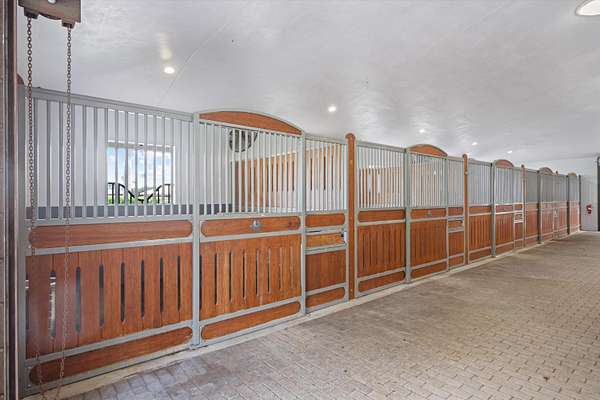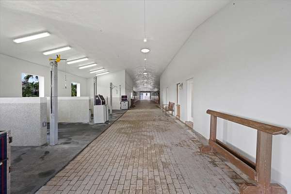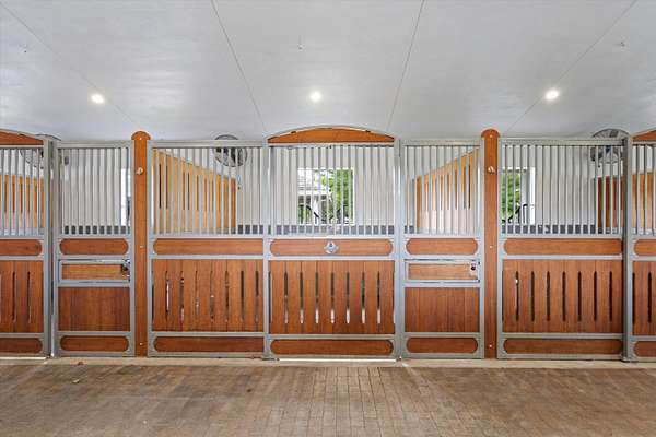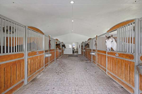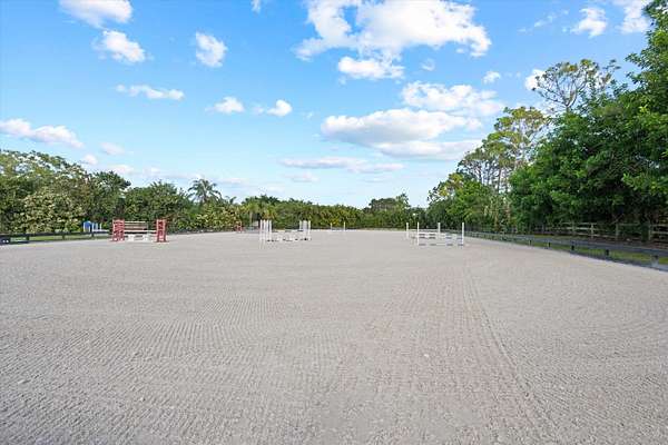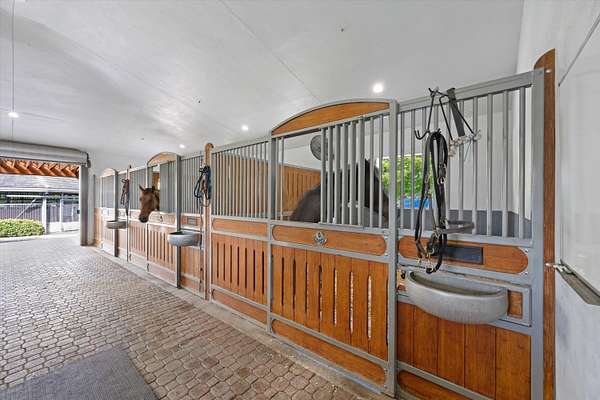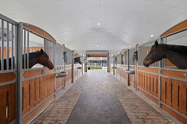 This 6-acre equestrian estate in Saddle Trail, is a top-tier facility for the professional equestrian, featuring 3 premium barns built in 2015 with 14,10 & 6 stalls respectively. All have extensive wash/groom stalls, feed rooms and tack rooms and feature Rower & Rub stalls. This facility comes with a solid lease income history. The arena is 115' x 215' fiber mix sub-irrigation with an adjacent 1 acre+ turfed grand prix field providing the ultimate in home site training. The 5 bedroom 3.5 bath pool home has a dedicated entrance. In total the property has 4 different entrances and great flow. The owners lounge with bathroom & kitchen provides a large social space. 7 large irrigated paddocks and a Kraft 6 horse covered walker. Property sits on the horse trail and is a true 15 min hack to WEF