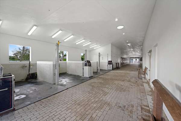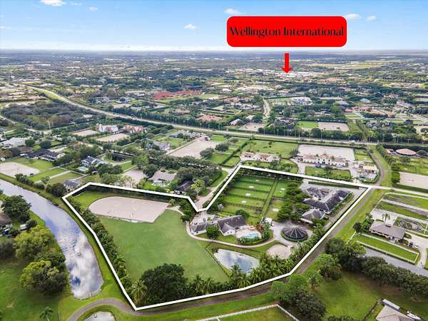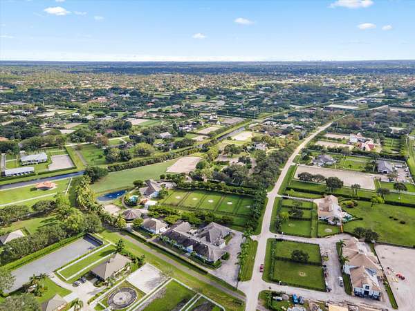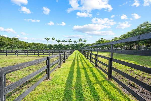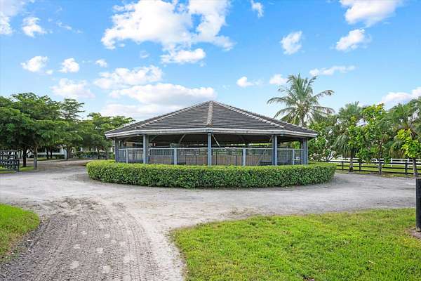 This 6-acre equestrian estate in Saddle Trail, is a top-tier facility for the professional equestrian, featuring 3 premium barns, with 14,10 & 6 stalls respectively. All have extensive wash/groom stalls, feed rooms and tack rooms and feature Rower & Rub stalls. This facility comes with a solid lease income history. The arena is 115' x 215' fiber mix sub-irrigation with an adjacent 1 acre+ turfed grand prix field providing the ultimate in home site training. The 5 bedroom 3.5 bath pool home has a dedicated entrance. In total the property has 4 different entrances and great flow. The owners lounge with bathroom & kitchen provides a large social space. 7 large irrigated paddocks and a Kraft 6 horse covered walker. Property sits on the horse trail and is a true 15 min hack to WEF.