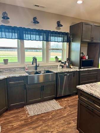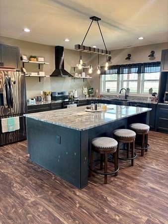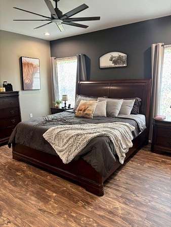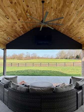 Est $3,779/moBeautiful 2550 SQ FT 3 BR, 2.5 BA home situated on 10.0 secluded acres. Enjoy gorgeous sunsets, tranquility and wildlife from a 24x24 covered patio with vaulted wooden ceiling and large fan. Stunning open kitchen with large island and separate butler's pantry. 2640 SQ FT attached garage with RV bay and two vehicle bays, a tornado shelter and tons of storage space.
