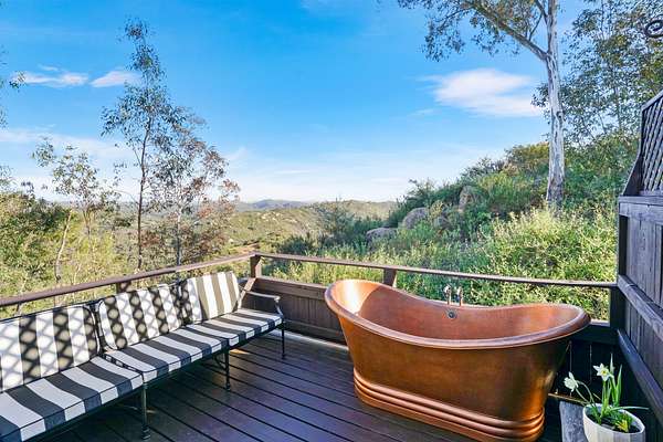 Welcome to Crown Hill Ranch! This is a unique offering located in hills of Escondido consisting of 2 parcels of land for a total of 157 acres. Upon entering the private gates you are immediately submerged in nature and peace. No road noise or neighborhood traffic to be heard. The well maintained roads wind you down to the primary residence where you will catch your first glimpse of the 23,000 acre Rancho Guejito preserve, one of the last existing Ranchos in California. This preserve will remain untouched so you will be guaranteed to never have a neighbor in sight. As you continue on through the property you will also stumble upon the tucked away yoga platform and charming tree house. Previously a thriving AirBNB, the treehouse is a custom structure perched in the tree tops of a large Engelman Oak. The detached office further down allows you time to disconnect and have a dedicated space to work or even room more guests. With miles of trails, the land is prime for horse back riding and highly equestrian friendly. At the end of a long day, you can soak in the outdoor copper tub overlooking Rancho Guejito. Further opportunity rings with an expansive pad ready to be developed. Plans have ben drafted and can be provided upon request. While the property is full off the grid with solar and wind turbine power as well as 4 wells throughout, power is being brought to the front gate and can be extended as desired. This land offering is truly one of a kind and has extensive opportunities from development to commercial use such as filming and photography. Come build a dream ranch!