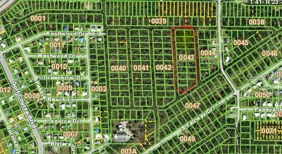 The Tee & Green Estates neighborhood has been partially developed with some older and some brand new houses on the west side. While thisbeautiful double lot is in the undeveloped area of the neighborhood, it sits only 1 block from paved streets and electricity. Once streets are laid inthis area it will be ready for building. This area is Flood Zone X, so you won't have to raise the elevation at build time and flood insurance won'tbe required. A double lot provides extra room to build your new home in paradise, and provide plenty of space to park your boat/trailer to takeadvantage of the amazingly diverse boating paradise we live in here. Or build on one lot and sell the other. Or build two houses and rent one outand live in one. Plenty of room to build a multi-generational family compound. No HOA or deed restrictions to comply with, just county buildingcodes for single family homes. This area is outside of the center of town, yet it is close to everything Punta Gorda has to offer: amazingrestaurants, boutique shopping, art galleries, parks for festivals, and a vibrant waterfront. Being close to an entrance to I-75 provides easyaccess to the entire SW area of Florida. This owner is selling this double lot and 2 other single lots on the same block. (MLS D6135582 &D6135583). Buy all 4 lots for $40k for a great investment in this future area.