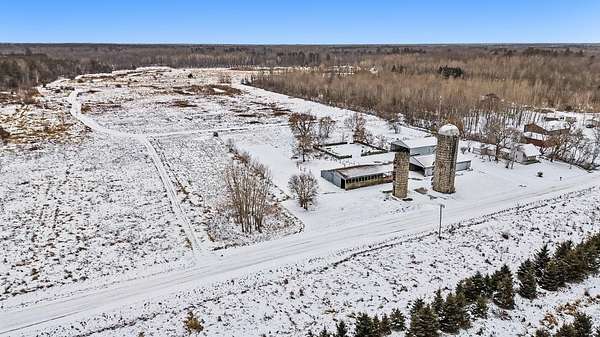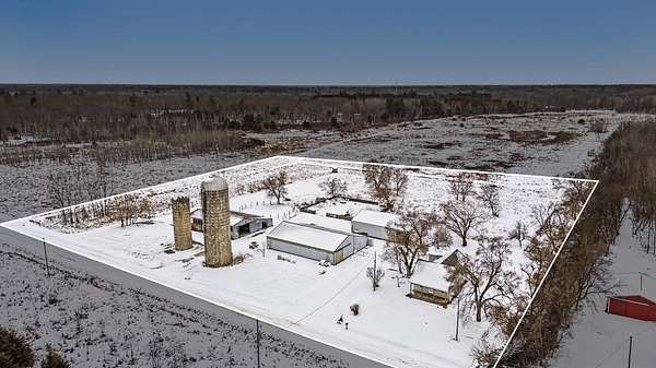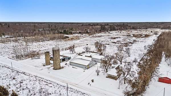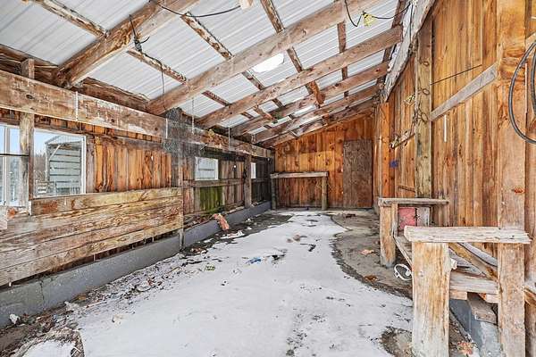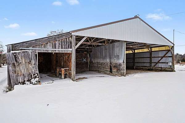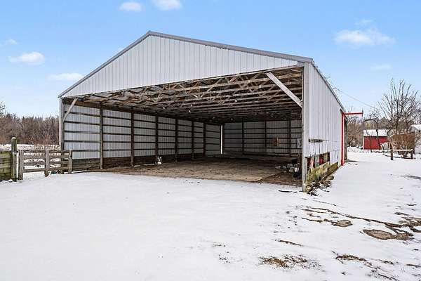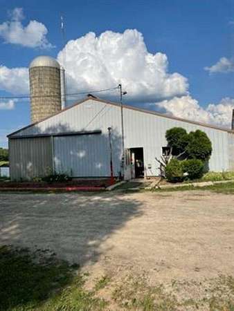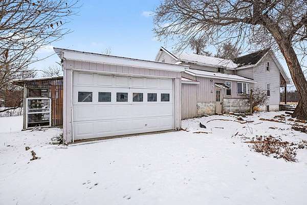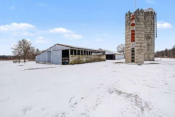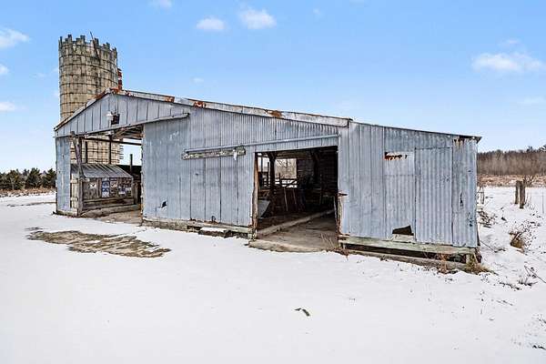 Bring your vision to this 4.97-acre rural fixer-upper with outstanding outbuildings. The farmhouse features 4 bedrooms, an attached garage, and space for two future bathrooms (unfinished). Repairs are needed, including electrical work, unknown well and septic condition, and a roof likely nearing replacement-priced accordingly. The property includes a 40x60 building with mostly concrete flooring, a 56x70 powered shop with concrete floors and a paint booth, and a 53x64 building with stalls, chicken coop, and partial concrete. A silo and large concrete pad add even more utility. Ideal for workspace, storage, equipment, vehicles, or animals. Seller offers a one-year lease with option to purchase and $25,000 down.