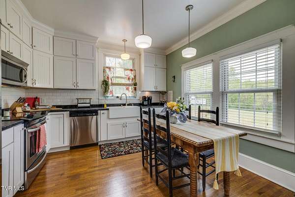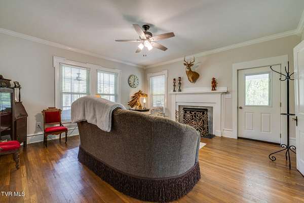 From the moment you step onto this property, you will immediately fall in love and feel like you have found home. But this is not just a home. It is a place that offers presence, character, and a story that has truly stood the test of time. Believed to date back to the mid 1800s, this remarkable property offers a rare opportunity to own a piece of history that has been thoughtfully restored for modern living. As you pull into the circle driveway, you are welcomed by mature trees and beautiful landscaping that frame the home perfectly. It feels like something out of a movie, timeless, peaceful, and unforgettable. Step inside and you are greeted by glistening hardwood floors, high ceilings, and an abundance of natural light. The current owner has taken great care to preserve the original character, including detailed moldings, original interior doors, vintage hardware, and stunning fireplace mantels that serve as the centerpiece of multiple rooms throughout the home. It truly feels like stepping back in time. The layout is both functional and inviting, featuring two bedrooms and one full bath on the main level, with two additional bedrooms and one full bath upstairs. Fireplaces anchor the living room, dining room, and both upstairs bedrooms, creating a warmth and comfort that is hard to describe and even harder to find. The kitchen maintains its historic charm while offering modern conveniences, including ceiling height cabinetry, tile backsplash, and ample space to gather. Just off the kitchen, the massive dining room with its beautiful fireplace creates the perfect setting for hosting holidays and entertaining family and friends for years to come. Every major system has been updated, allowing you to enjoy the beauty of a historic home without the typical concerns. In 2021, the home underwent extensive renovations including new electrical, new plumbing, updated sheetrock where needed, fresh paint, restored original hardwood floors, new lighting, ceiling fans, propane gas fireplaces, a tankless water heater, water purification system, and security system. In 2022, a new HVAC system was installed throughout. In 2023, the home received a new metal roof, new gutters, downspouts, and a leaf guard system, along with exterior improvements including new porch railings and a hardscape fire pit area perfect for cool evenings with family and friends. Step outside and the property continues to impress. A serene, year round creek winds along the property and eventually feeds into the Holston River, creating a peaceful backdrop that is hard to find and impossible to replicate. With over three acres of level, usable land, the possibilities here are truly endless. Whether you envision a private retreat, a family homestead, or even a setting for weddings and gatherings, this property is ready for it. There is ample space for future expansion, whether that be a detached garage, additional structures, or even a pool. The land has been thoughtfully improved and offers both beauty and functionality. This is more than just a home. It is a day to day experience you will fall in love with. A place where history meets modern comfort. A property that invites you to slow down, take a deep breath, sit on the porch, and stay awhile. Opportunities like this are rare, and once you see it in person, you will understand why. All information is deemed reliable but to be verified. Call today to schedule your private showing.