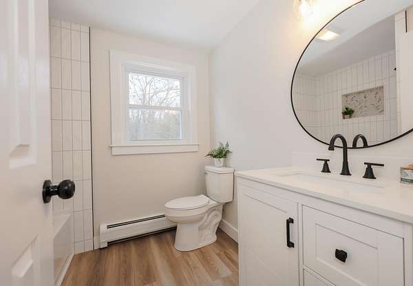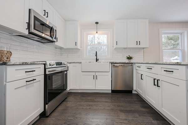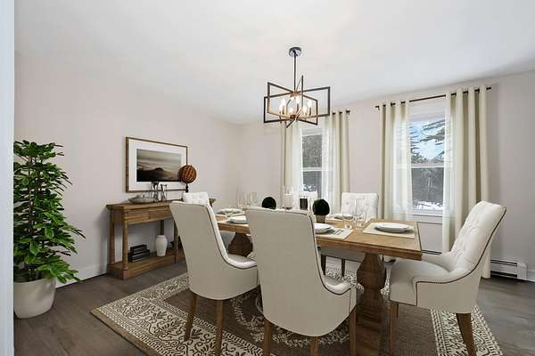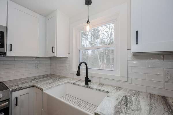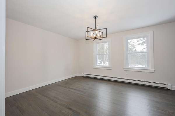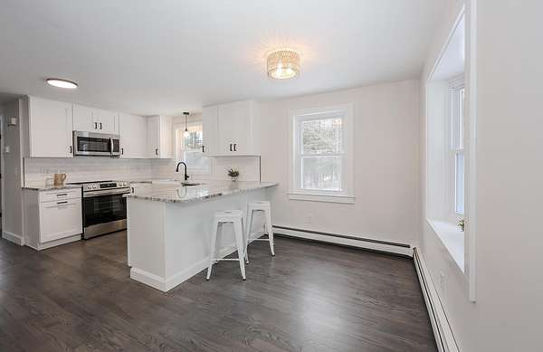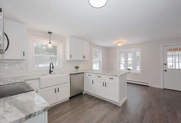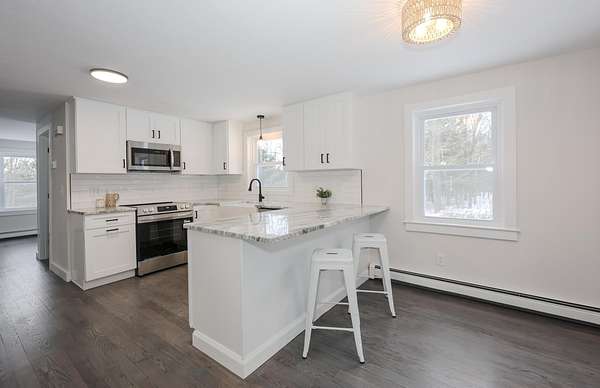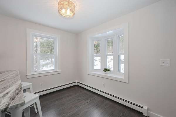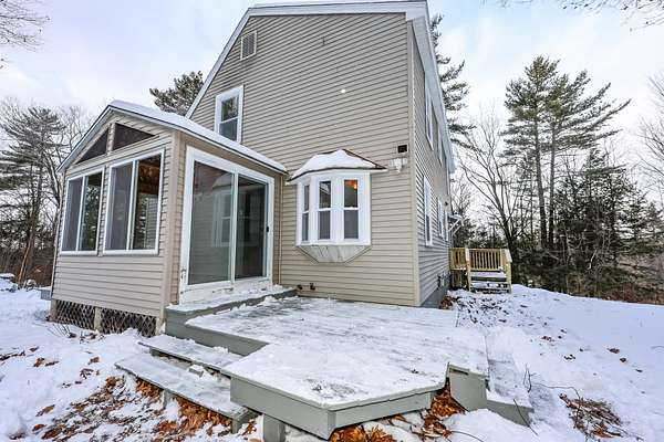 Tucked back from the road in a peaceful country setting this beautifully renovated home offers privacy, nature, and modern comfort. Nestled on 2+ acres and directly abutting Audubon Society conservation land, you'll enjoy tranquil surroundings and seasonal scenic views right from your own backyard. Inside, the home features 3 bedrooms, including a spacious primary with a walk-in closet. Both renovated bathrooms showcase stylish updates, including a newly tiled shower, new vanities, and modern fixtures. The heart of the home is the stunning eat-in kitchen, outfitted with brand-new cabinetry, new appliances, a classic subway tile backsplash, and elegant marble countertops. A formal dining room offers additional space for hosting and gatherings. The expansive living room opens seamlessly to a deck overlooking the private backyard--perfect for relaxing or entertaining. An enclosed porch provides another peaceful spot to enjoy the natural landscape. The partially finished lower level offers bonus space and features a convenient walkout and ample storage space. Enjoy peace of mind with mostly new windows, a new slider door, and a whole-house generator, ensuring efficiency and comfort year-round. With its thoughtful updates & serene setting, this home is the perfect blend of modern living and country charm. Seller is a licensed NH RE Agent.
